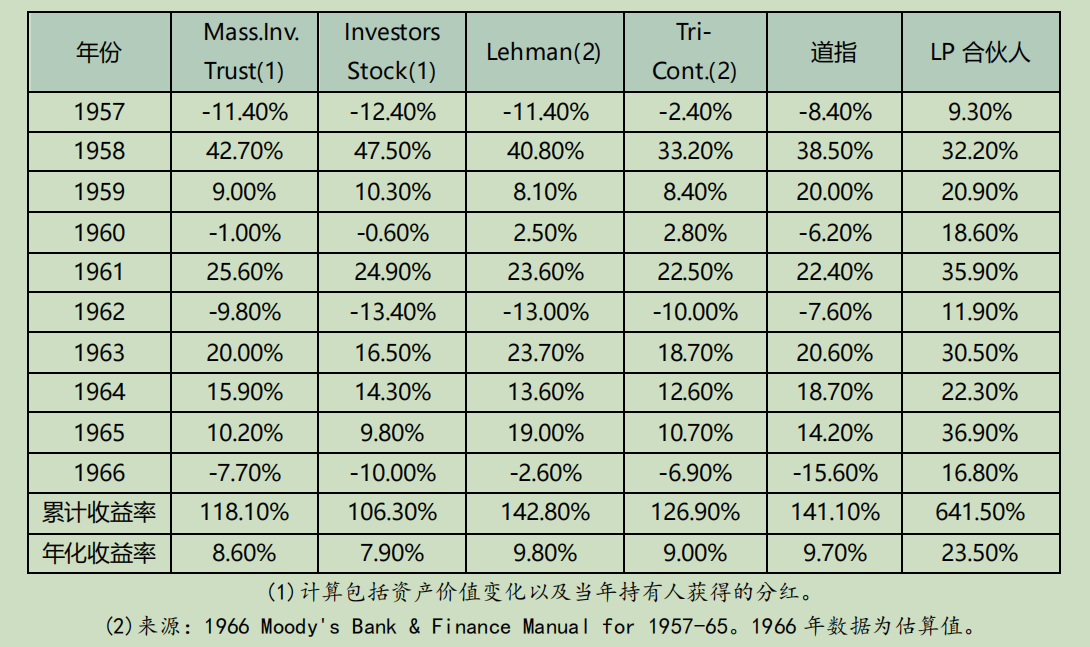 巴菲特:巴菲特合伙基金于 1956 年 5 月 5 日成立于密西西比河西岸。最初的几个合伙人都是我最坚定的支持者,四位家人,三个好朋友,我们一共投资了 105,100 美元。(我找到了 1957 年 1 月的信,想从里面发现一两句闪光的话,能在这里引用一下。一定有人把我这封信给篡改了,要不里面的金句怎么没了?)