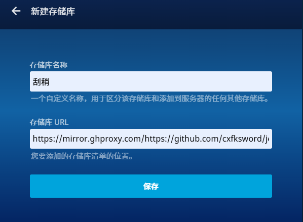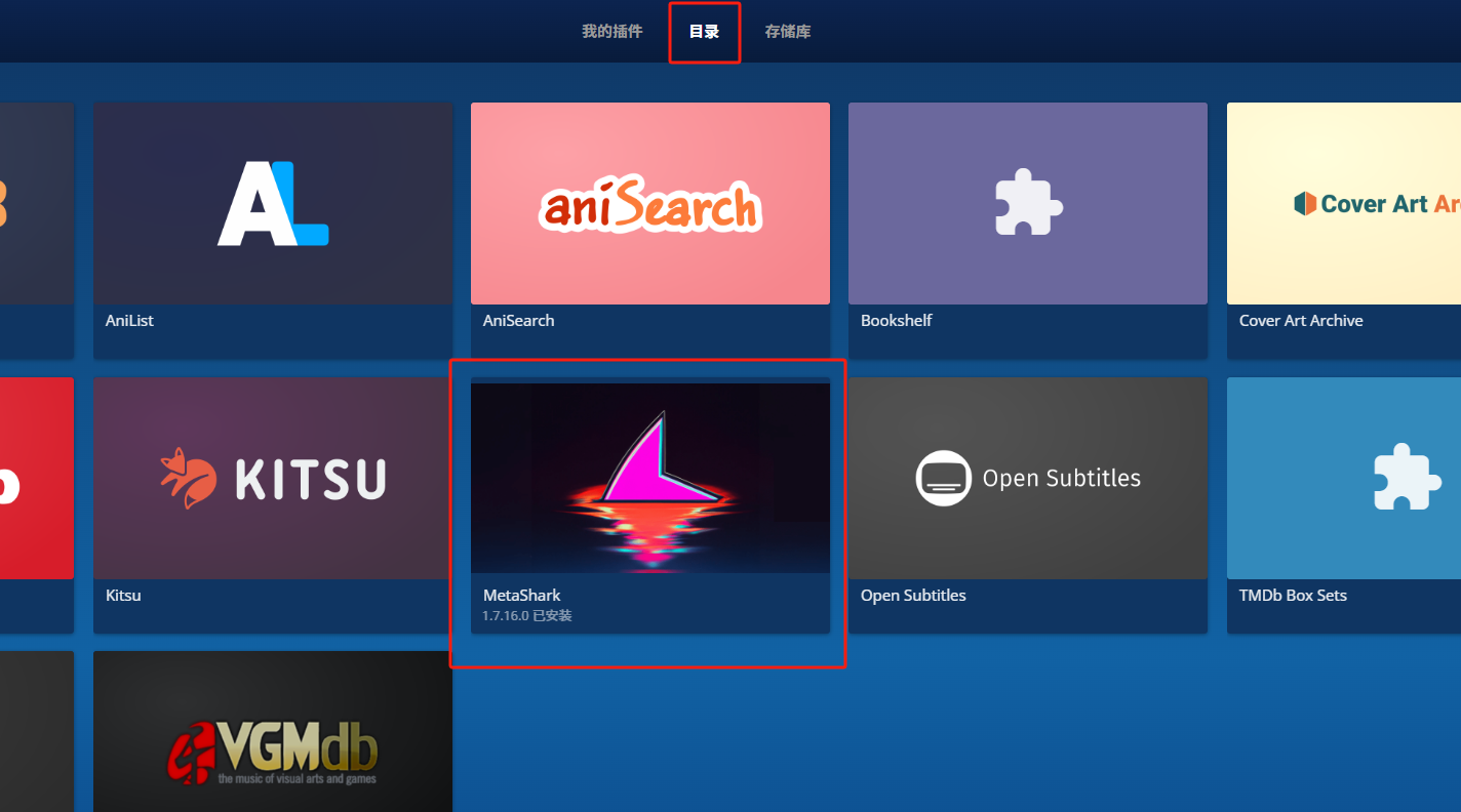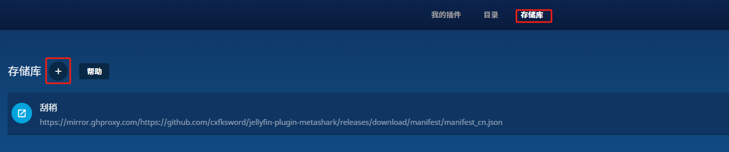 https://mirror.ghproxy.com/https://github.com/cxfksword/jellyfin-plugin-metashark/releases/download/manifest/manifest_cn.json若上述URL失效,可在插件仓库中获取最新地址:https://github.com/cxfksword/jellyfin-plugin-metashark ,重新添加一个存储库。