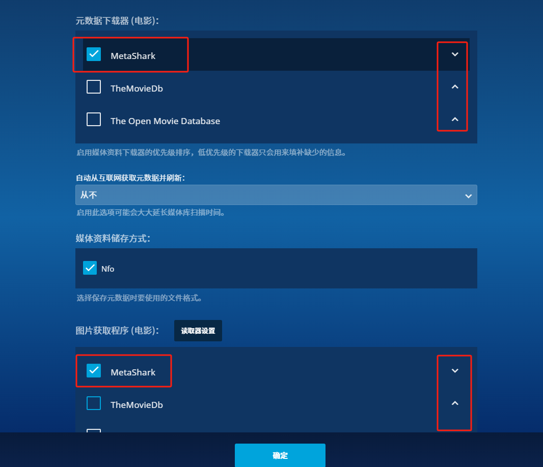 其它刮削器均可选择关闭,也可以启用作为MetaShark失效时的备用选择。