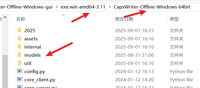 模型也需要去github的发布页面下载model.zip,下载后放置到打包后的exe文件同级的CapsWriter-Offline-Windows-64bit目录下即可使用。